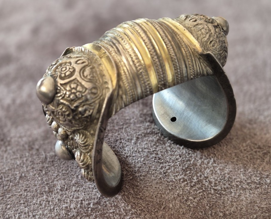 Огромна Възрожденска Автентична рогатка 1874 сребърна гривна с позлата