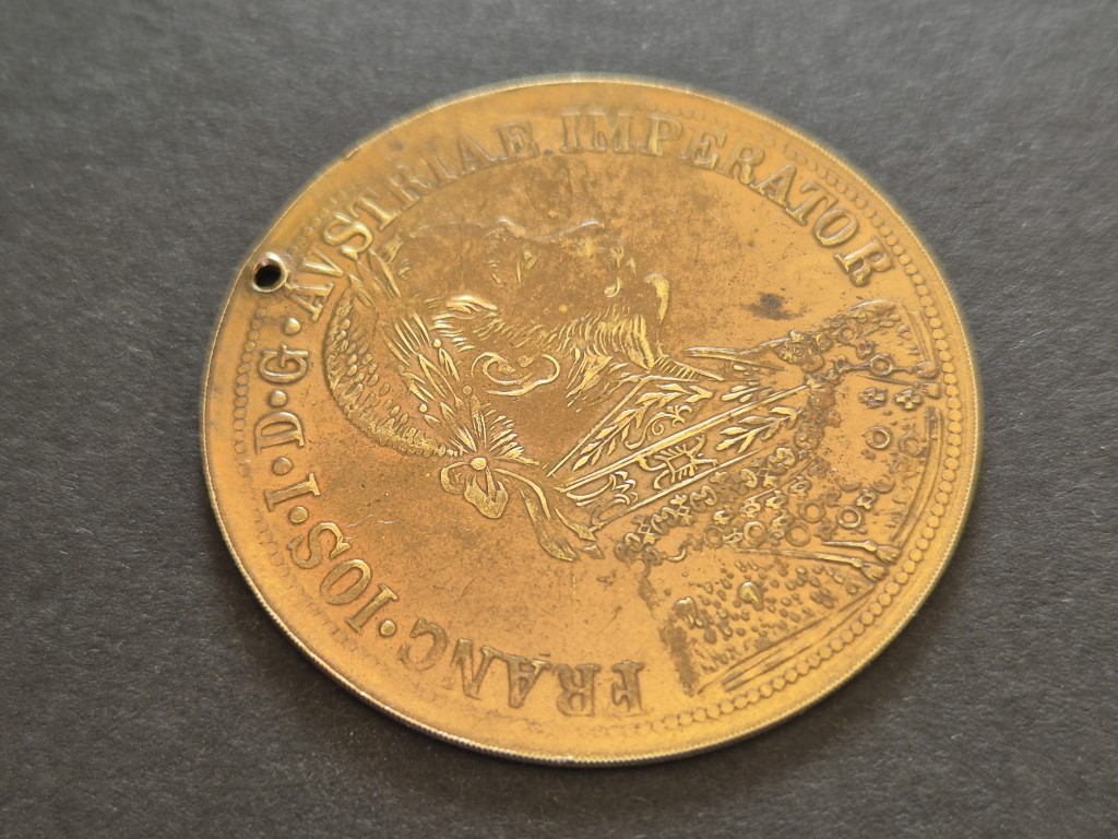 Автентичен Възрожденски Месингов пендар за накит 1905 година Император Франц Йосиф