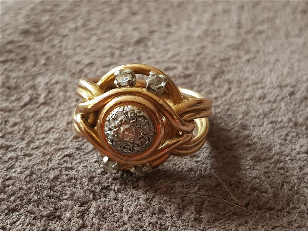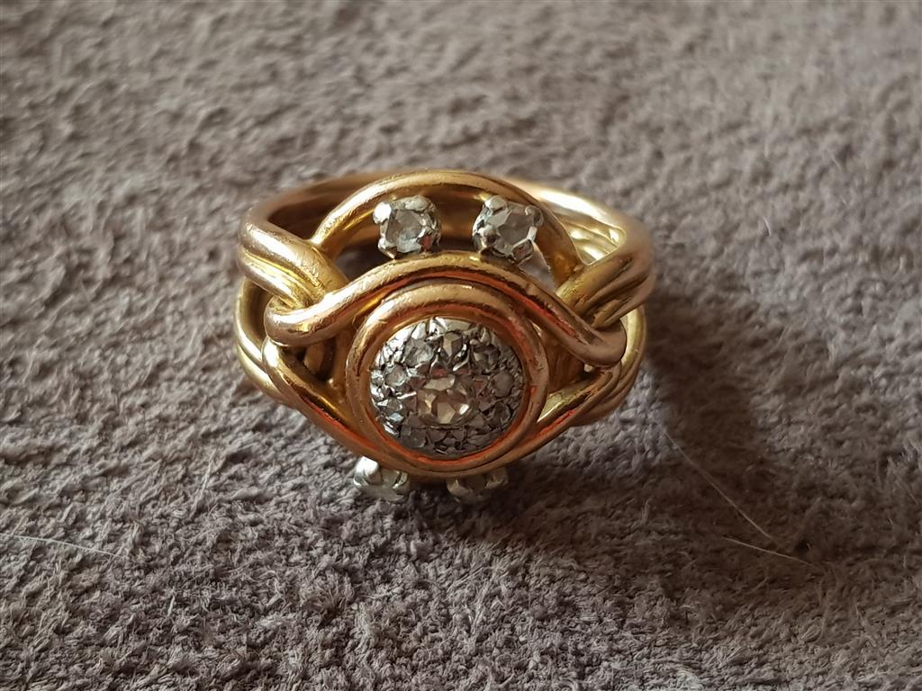 ЗЛАТЕН 18 КАРАТА 7 БРИЛЯНТИ диаманти елегантен пръстен