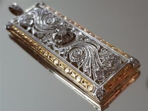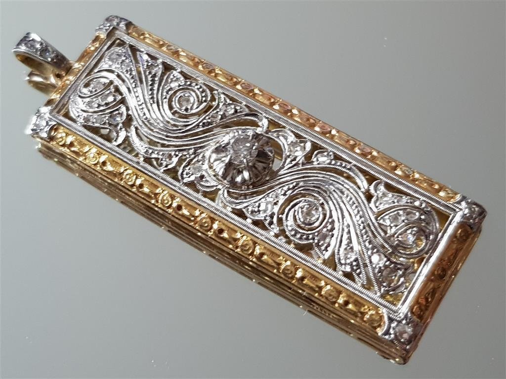 Начало » Антиквариат » ЗЛАТЕН 18 карата СТИЛЕН МЕДАЛЬОН с Брилянти ДИАМАНТ биколор