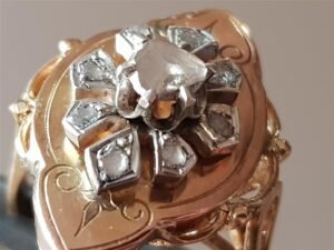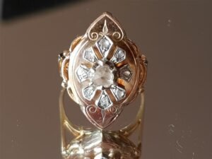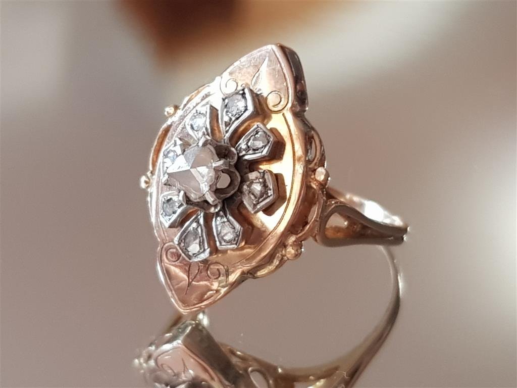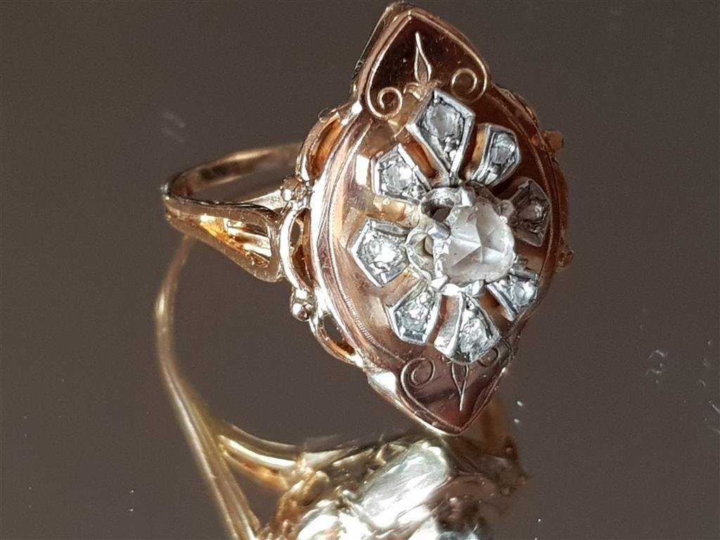 ЗЛАТЕН 18 КАРАТА с ДИАМАНТИ СТАРА ИСПАНИЯ елегантен пръстен