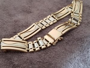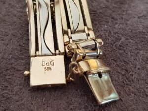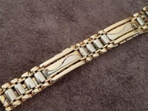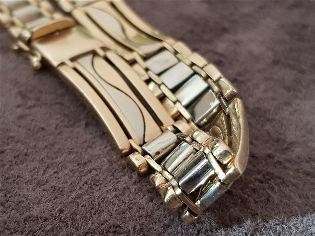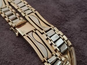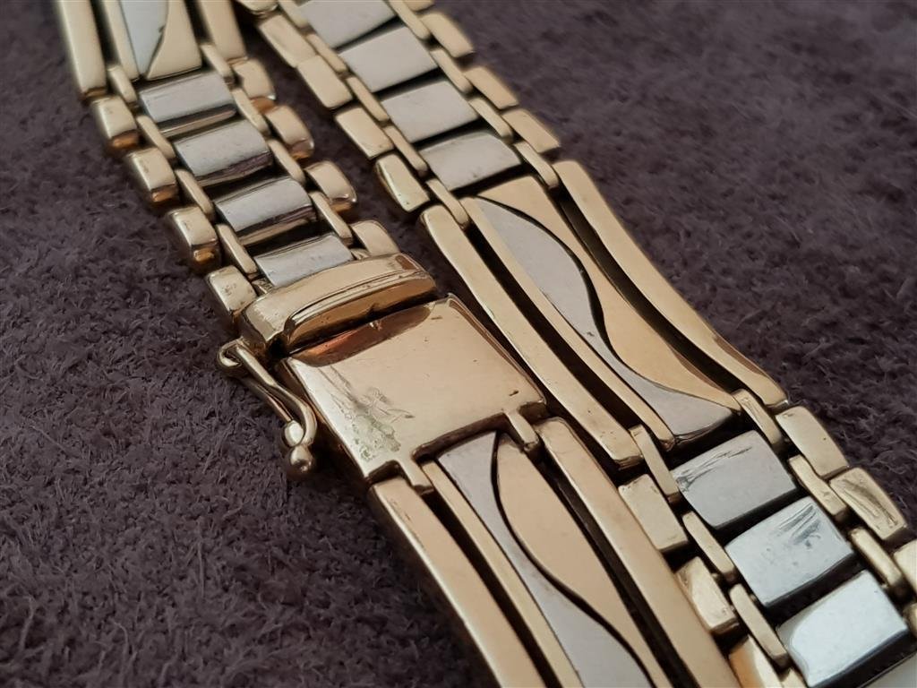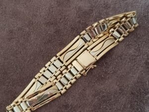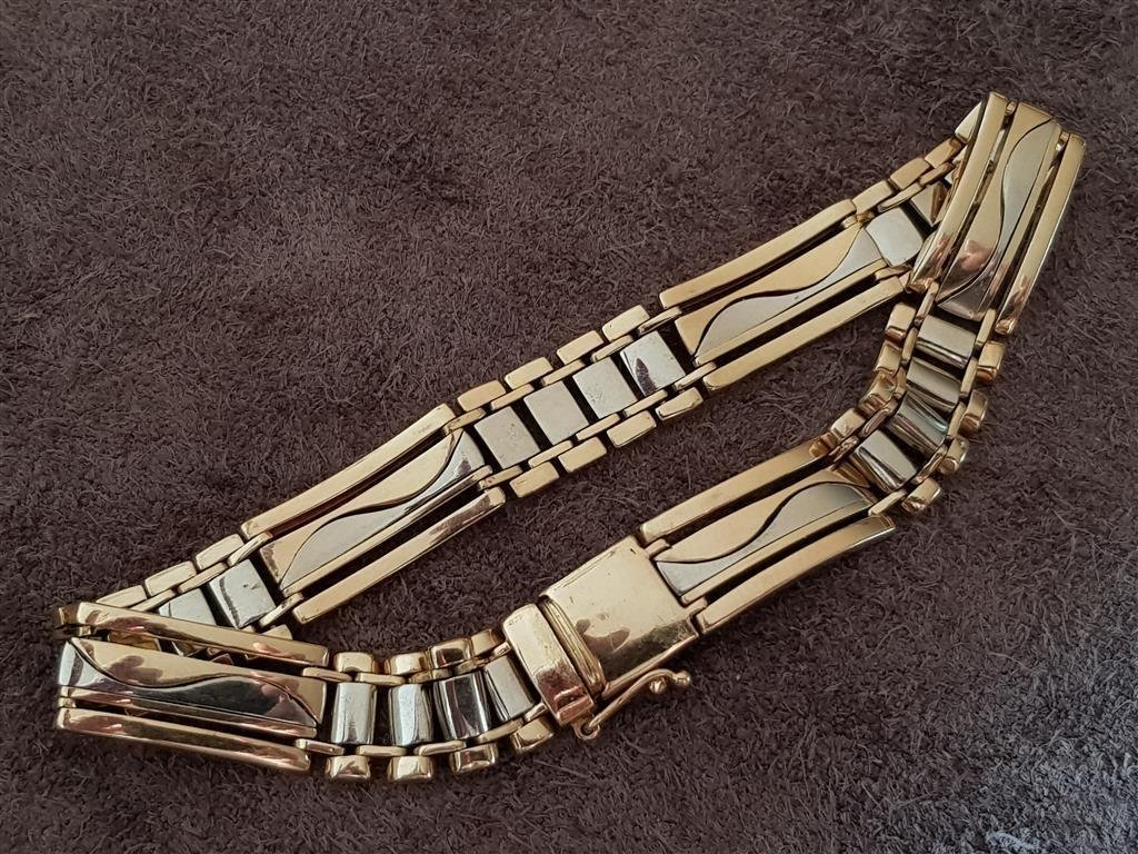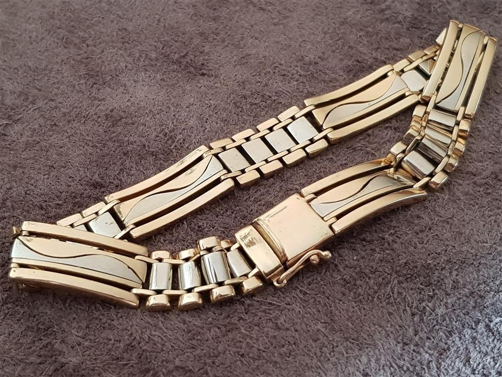 Начало » Антиквариат » ЗЛАТНА 14 КАРАТА Биколор МАСИВНА Стилна елегантна гривна