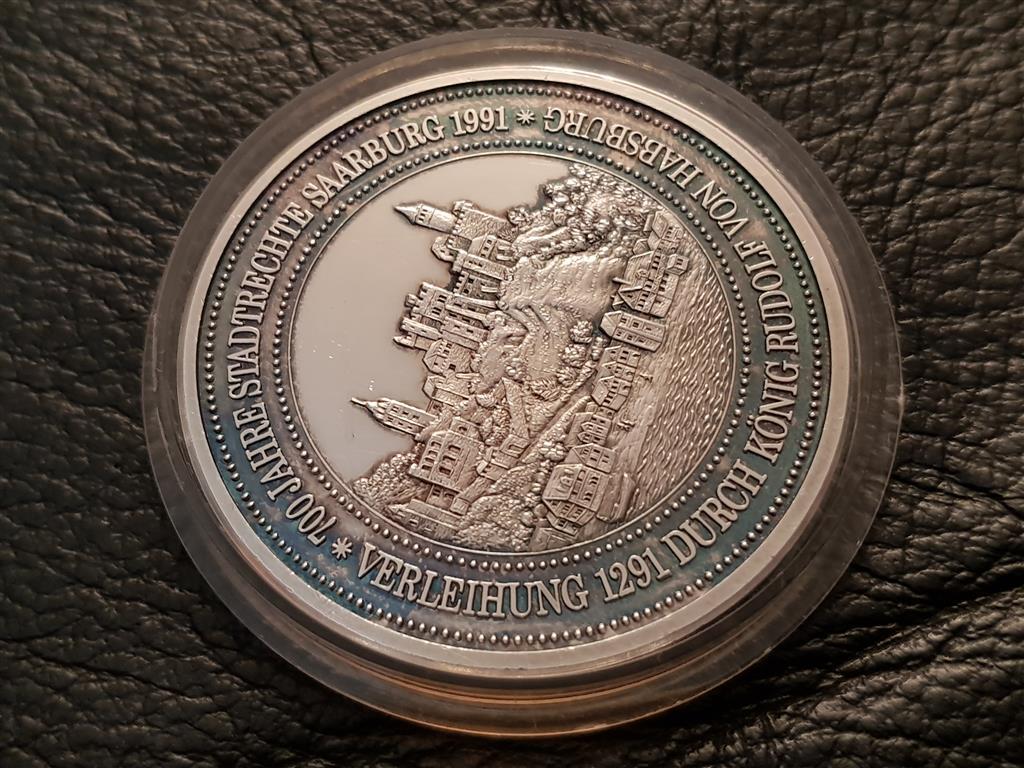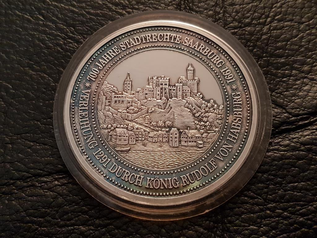 Немски СРЕБЪРЕН 999 ‰ ПЛАКЕТ медал 1291–1991г. 700г. Саарбург