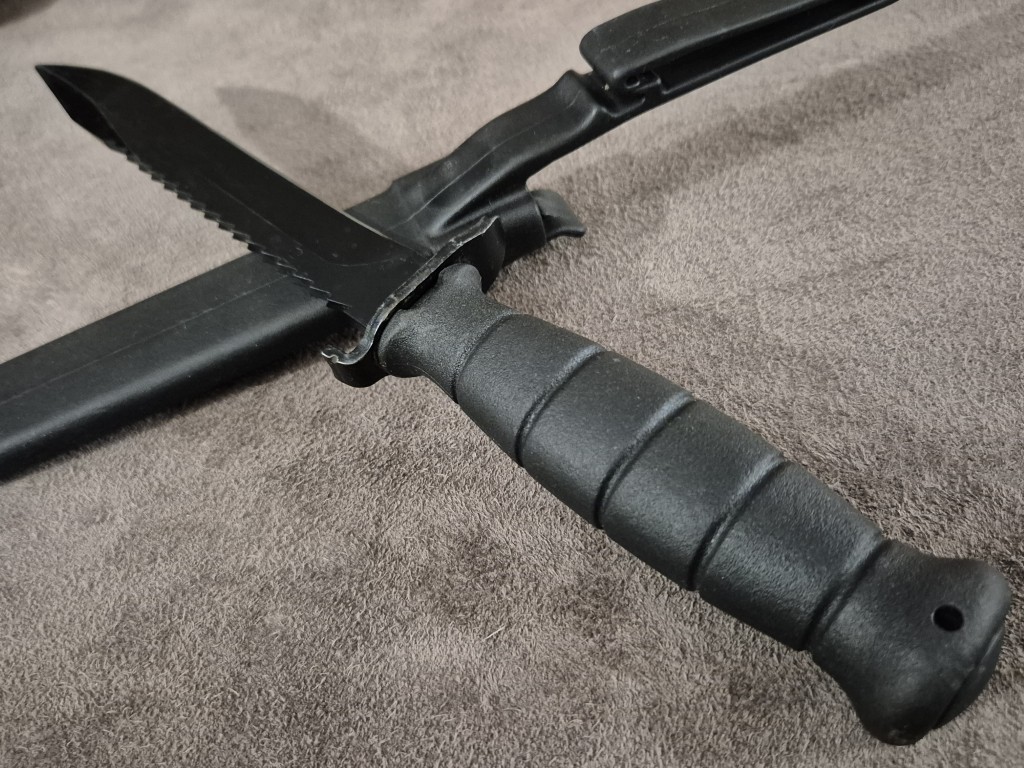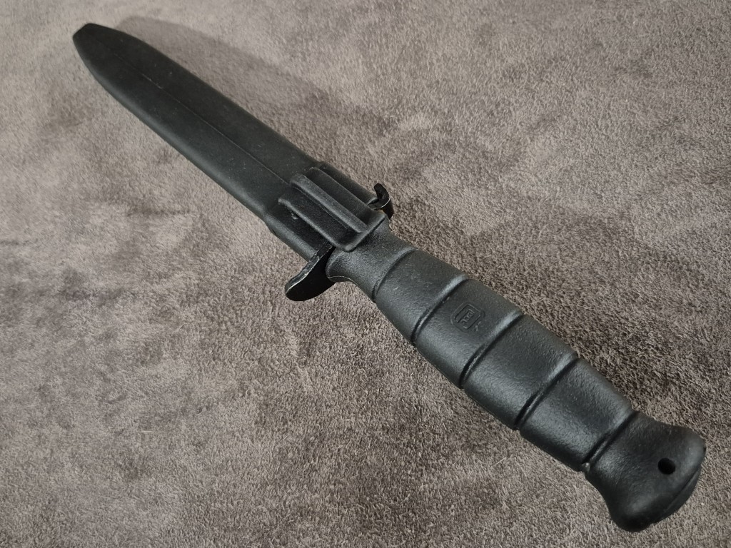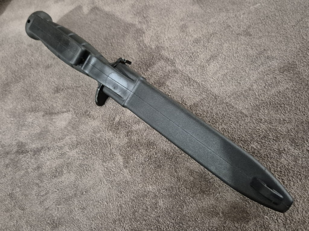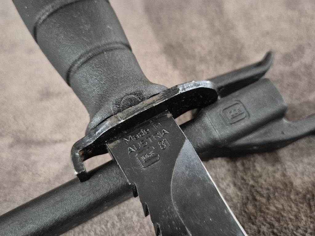 Предпазителят, който отделя дръжката от острето, освен че служи за прикрепяне на ножа към Steyr AUG,