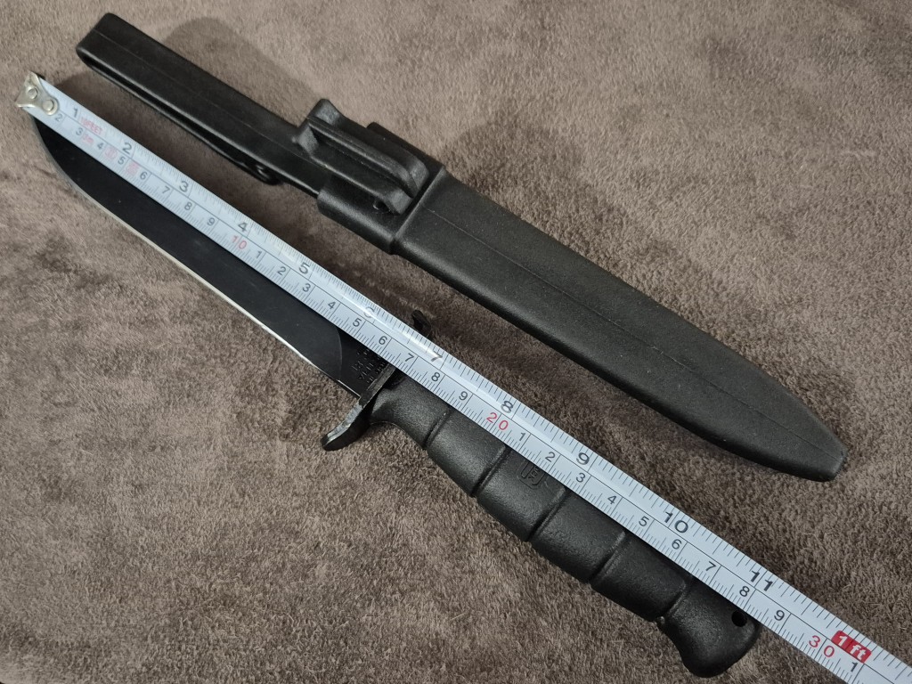 Острието е направено от стомана 1095 с твърдост 55 HRC и е от типа клип пойнт (clip point), а боята е нанесена електролитно (прахово).