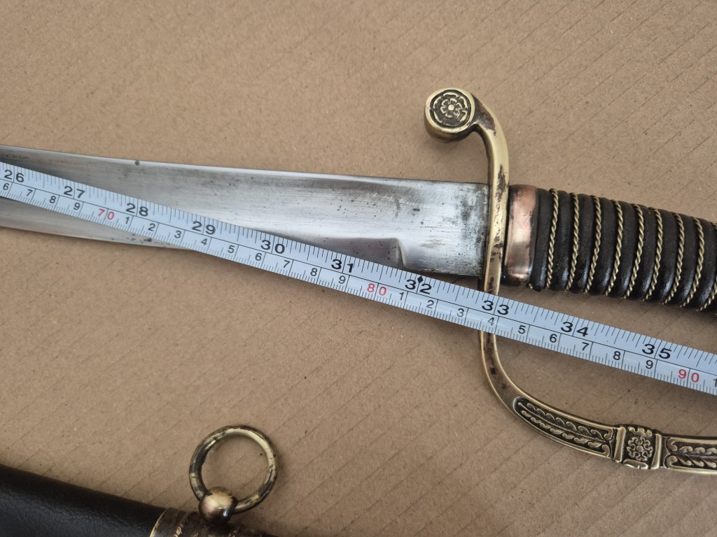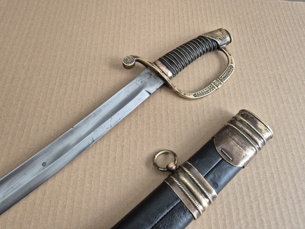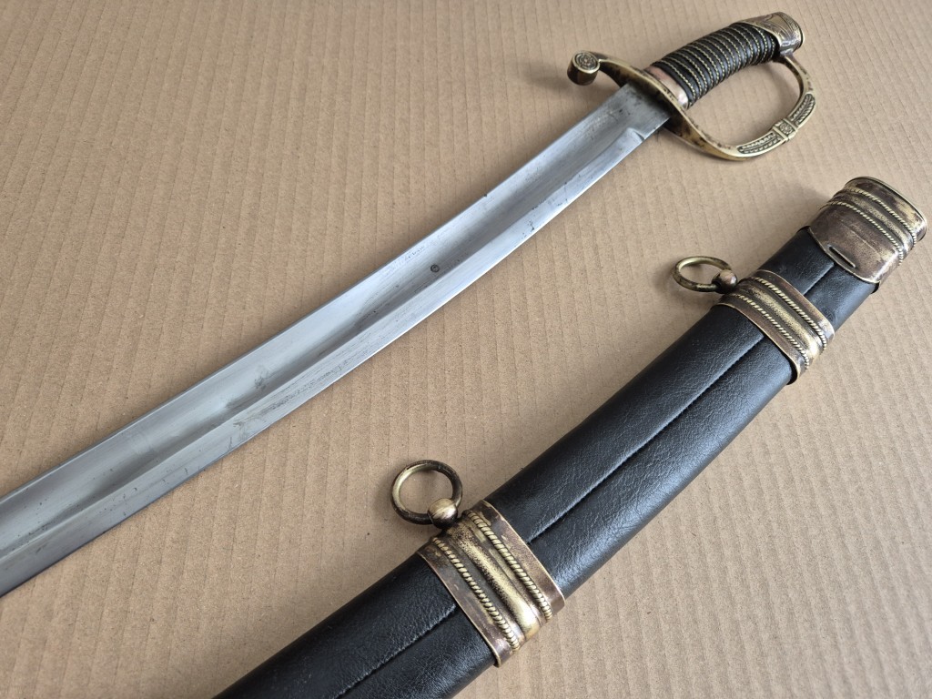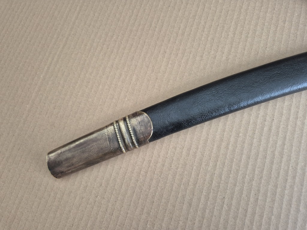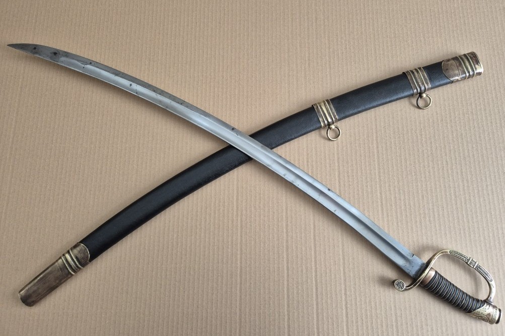 Монограм на Император Николай II на бронзовият гард на дръжката. Перфектно запазено остие. Запазена кания и кожа. Обща дължина - 103 см. Дължина само на острието - 83 см. Дължина само на сабята - 98 см. Запазена кания и кожа.
