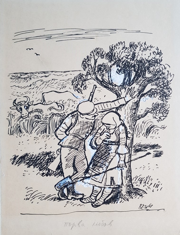 Техника и материали:  Туш перо върху стар соц. кадастрон