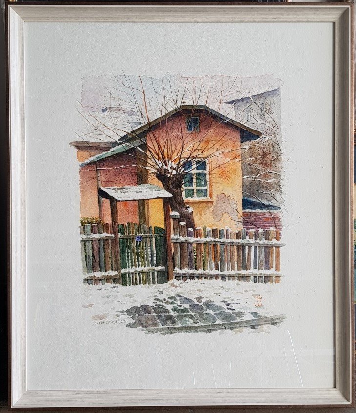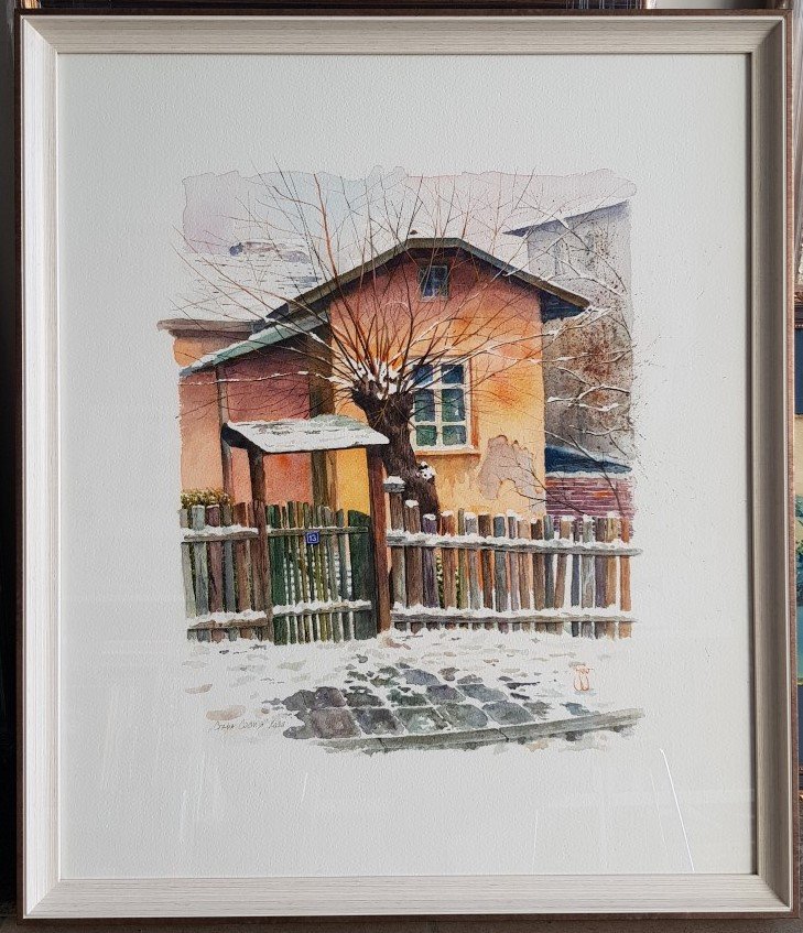 Рамка: Стилна дървена рамка с паспарту и стъкло